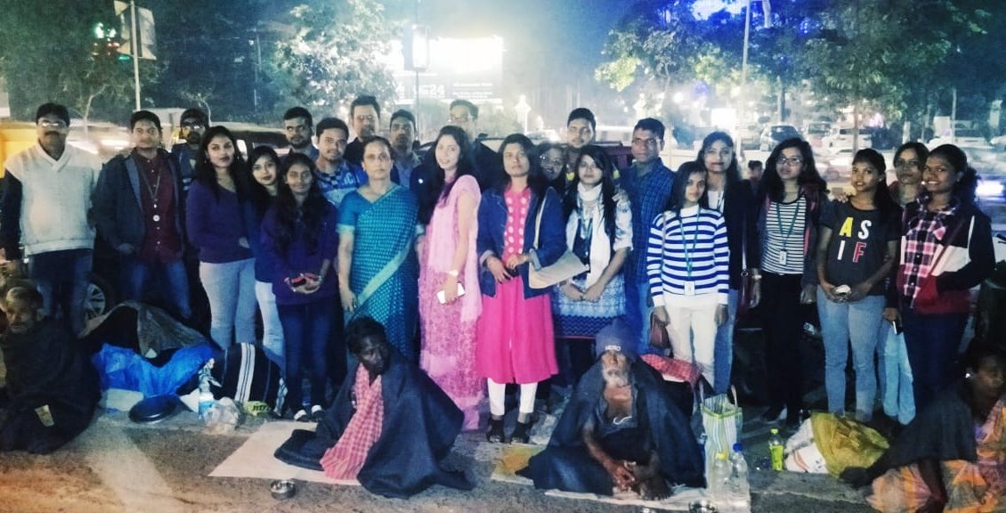 Bhubaneswar : Students from Madhusudan Institute Of Co-Operative Management, BBSR, Suchi Gupta from NGO Arohee, Chief of Aaradhya Charitable Trust Sagarika Satapathy, Silu Bhai, MR Arun Prasad Sahoo distributed Blankets to the homeless, elderly and physically handicapped people near Ram Mandir in Bhubaneswar on Friday night in this winter season.