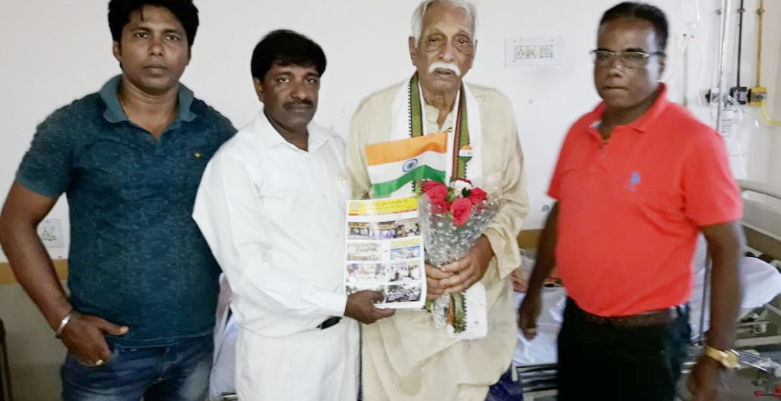 94 year veteran freedom fighter and gandhian wasfelicited by nyca at cuttack scb medical who is undergoing a cardiac treatment during the 72nd indepence day