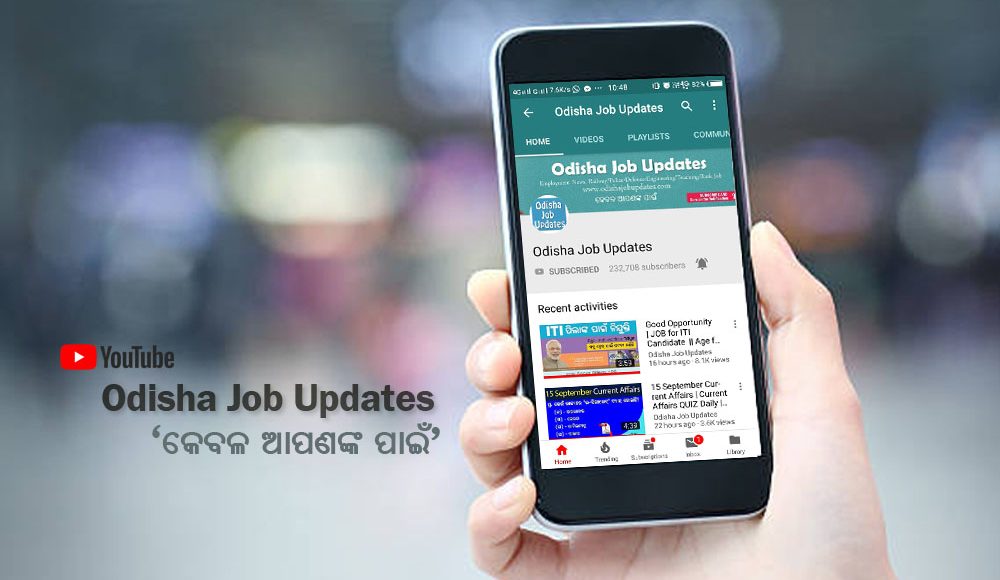 ଭୁବନେଶ୍ୱର : ଆମେ ପାଠ ପଢ଼ୁଛେ କଣ ପାଇଁ? ଖଣ୍ଡେ ଚାକିରୀ ପାଇଁ । ଚାକରି କେମିତି ପାଇବା ? ଚାକିରୀ ସମ୍ବନ୍ଧୀୟ ସୂଚନା ପାଇଲେ ତ ଚାକିରି ପାଇଁ ଆବେଦନ କରିପାରିବା । ହେଲେ ଚାକିରୀ ସୂଚନା ପାଇବା କେଉଁଠୁ ? ଏଥିପାଇଁ ଚିନ୍ତା କରନ୍ତୁନି । ଏବେ ଚାକିରୀ ର ସମସ୍ତ ସୂଚନା ‘ ଓଡିଶା ଜବ ଅପଡେଟସ୍ ‘ ୟୁଟୁବ ଚ୍ୟାନେଲ ନେଇ ଆସିଛି । ୨୪*୭ ଅପଡେଟସ । ଏହା ପୁଣି ସମ୍ପୂର୍ଣ ମାଗଣାରେ ।