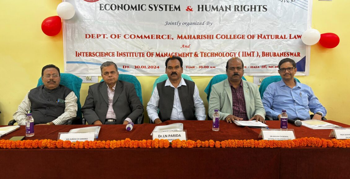 Bhubaneswar:Seminar on “Economic System and Human Rights” was held at Maharshi College of Natural Law in Collaboration with Interscience Institute of Management and Technology, (IIMT) Kantabada under the presidentship of Prof.Manju Patnaik, Principal of the college. Prof.Kailash Chandra Biswal, HOD of Management NEHU Shillong, Prof. Santosh Kumar Mishra, IIM, Bengaluru. Sri Suresh Chandra Sarangi former General Manager, Bank of India attending the event told that economic system of a country regulates the production, distribution & marketing of the products and also manage the natural resources of the state. It also helps to augment the economic condition of the country. India’s economic System was open in1991 and ended the License and permit raj. Direct Foreign Investment (DFI) come to India and it establish economic position of India at 3.75 trillion dollar and its places Fifth in the world. Participating in the debate Prof.Dr Jagamohan Pattanayak, Dean, Administration, IIMT told that the seminar topic has been selected by Dr.Fransishco Vliglarilo, Professor of Lai Plata university of Argentina and head lecture series chair of UNESCO who propose to organise the seminar in different colleges of Odisha by the cooperation of Prof,(Dr).Srikanta Patnaik, Chairman, IIMT. Sri Kailash Ranjan Pradhan gave the Vote of Thanks and Smt.Sroojani Mohanty Coordinate the event.