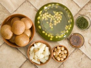 ୧. ପାନିପୁରି : ଏହା ଛଣାହୋଇଥିବା ଗୋଲ ଆକୃତିର ଫମ୍ପା ପୁରି ଯେଉଁଥିରେ ଆଳୁ, ବୁଟ ଓ ଚାଟ ମସଲାର ମିଶ୍ରଣ ଥାଏ । ଏହାକୁ ମିଠା, ମସଲା ଯୁକ୍ତ ପାଣି ଓ ତେନ୍ତୁଳି ଚଟଣି ରେ ଖିଆ ହୁଏ । ଏହା ଏକ ପ୍ରସିଦ୍ଧ ଷ୍ଟ୍ରିଟ ସ୍ନାକ ଯାହାର ସ୍ୱାଦ ବିଭିନ୍ନ ଅଂଚଳ ଅନୁଯାୟୀ ଭିନ୍ନ ଭିନ୍ନ ।